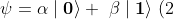 Hay una enorme similaridad estructural con la expresión que determinaba el estado del gato, de hecho sólo cambia el nombre de los estados (vivo ha pasado a llamarse cero y muerto ha pasado a llamarse uno), además de que los pesos pueden tomar cualquier valor. De hecho, el sistema cuántico del gato de Schrödinger sólo necesita un qubit para ser representado. La potencia de la expresión anterior viene de que un qubit puede encontrarse en una superposición continua. Entendemos por superposición a que los valores que puede tomar son una combinación de las posibles situaciones. Esta combinación también viene determinada por los valores que toman alfa y beta, que determinan la probabilidad del resultado de la medición. Es decir, si alfa toma un valor de 0.9 y beta de 0.1, al realizar la medición del sistema, 9 de cada 10 veces el resultado será cero y 1 de cada 10, será 1.